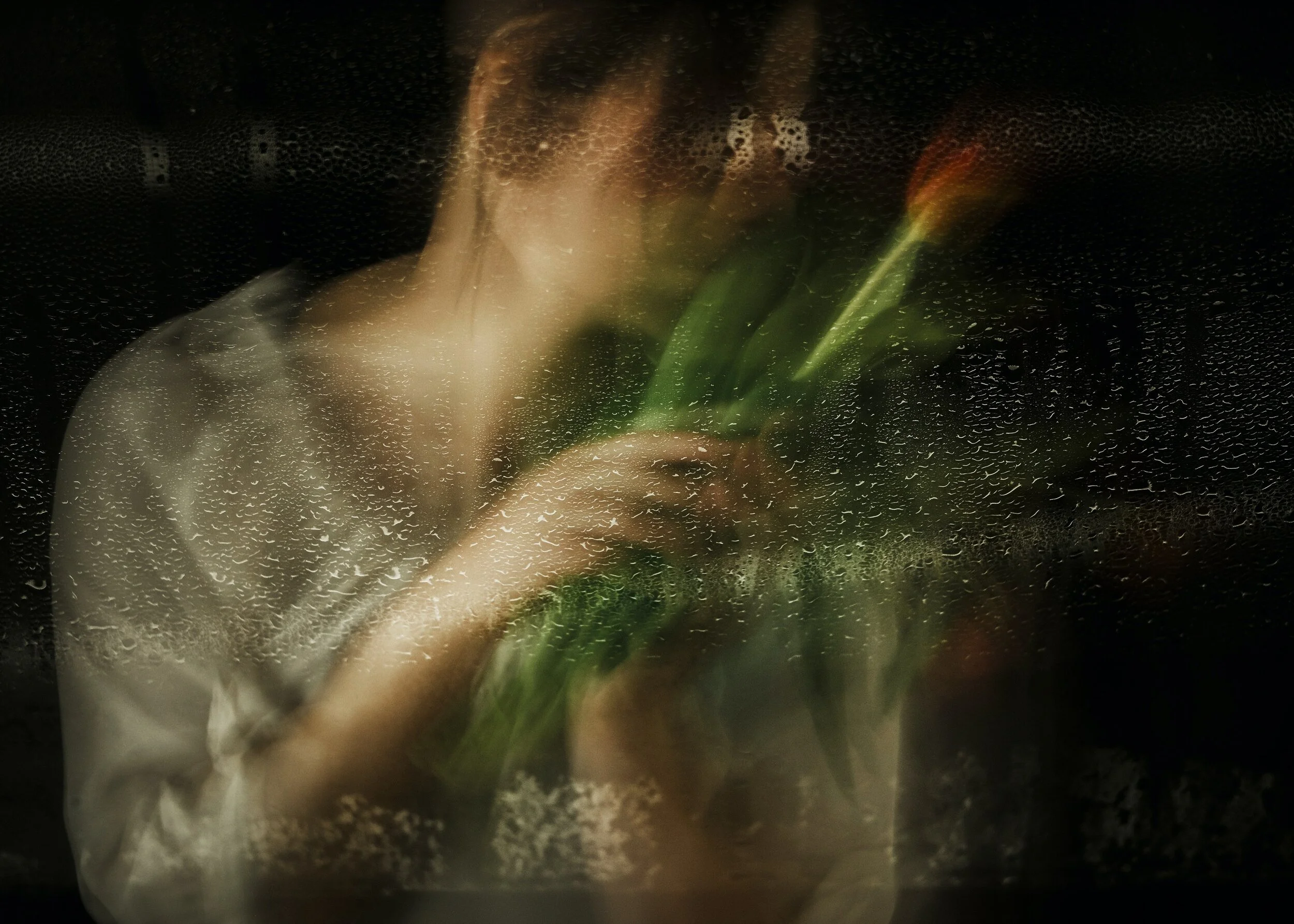 In this double exposure portrait I was led by the vibrant and dreamlike colours of a moody sky. I layered them in camera over a self-portrait that contained complimentary hues. Look for colours that compliment each other and will work well when blended. Remember that the light areas of one image will stand out against the darkest areas of the second image.
